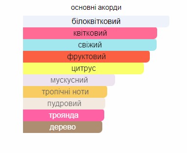 Ніжний і досить невагомий аромат, що при цьому залишає манкий шлейф. Одного разу відчувши цей аромат Ви можливо замислитесь над тим, що могло бути ароматніше.