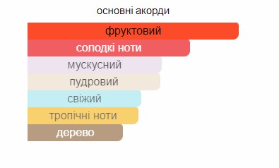 Верхні ноти: Груша, Маракуя, Малина, Чорна смородина, Персик